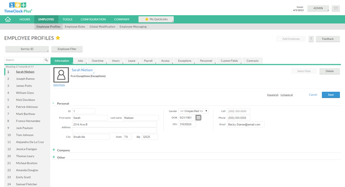 TimeClock Manager provides the ability to add employees, edit time, and even transfer data to payroll through one of our interface features. The managers and supervisors in your organization have access to employee information to control labor costs and overtime within TimeClock Manager. Time tracking tools, such as “Employee Status,” offer management a “real-time” snapshot of who is clocked in, what time they arrived, and what task they are performing now.