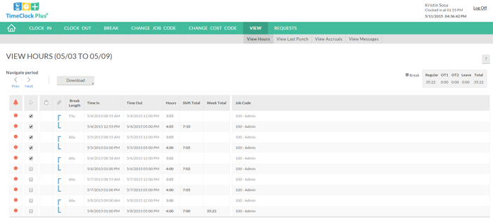 WebClock allows employees to clock in and out, view hours, and change jobs with just a few clicks of the mouse and it’s all done right from a kiosk or the employees’ own computers.